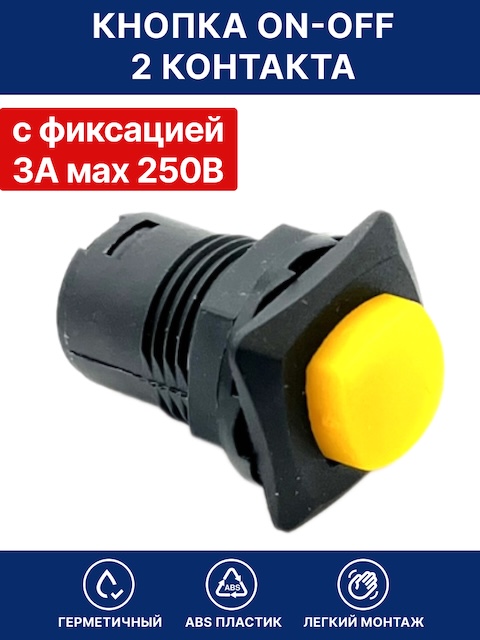 Кнопка с фиксацией круглая ON-OFF, 2 контакта / Кнопка выключатель желтый 3А max. 250В